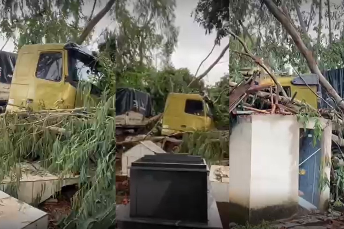 VÍDEO: carreta desgovernada invade cemitério e destr...